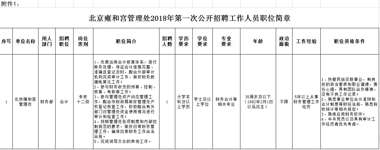 北京雍和宫管理处2018年第一次公开招聘工作人员职位简章