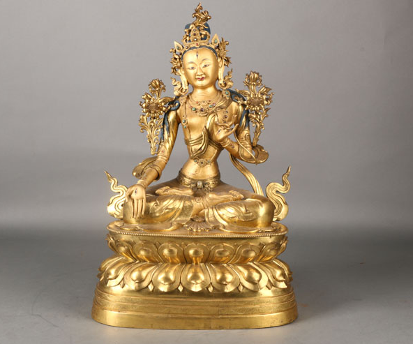 清乾隆铜鎏金绿度母像